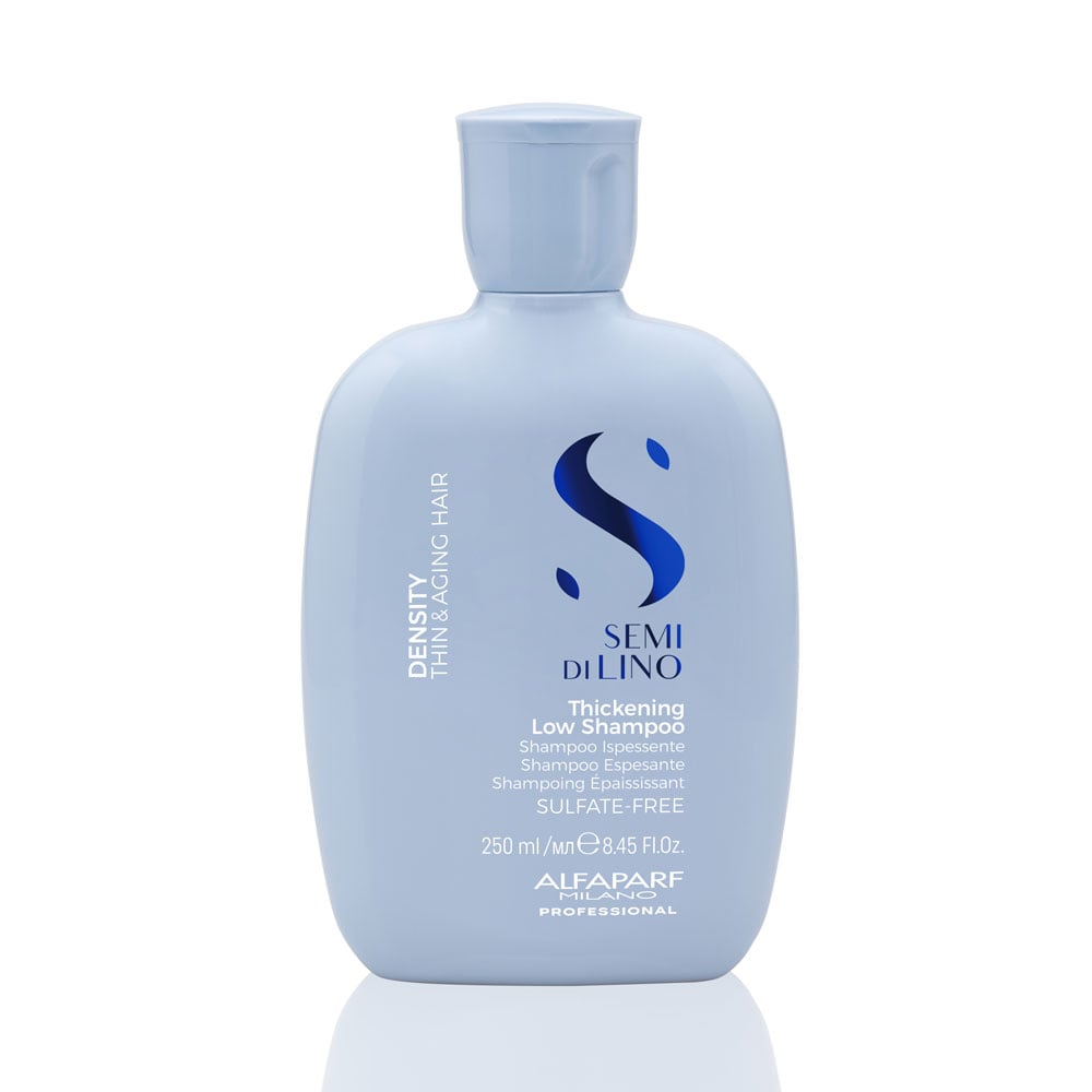 Semi Di Lino Density - cheveux clairsemés et matures. Le shampooing épaississant nettoie en douceur et ajoute du corps, pour des cheveux plus épais et revitalisés avec une apparence jeune et saine.