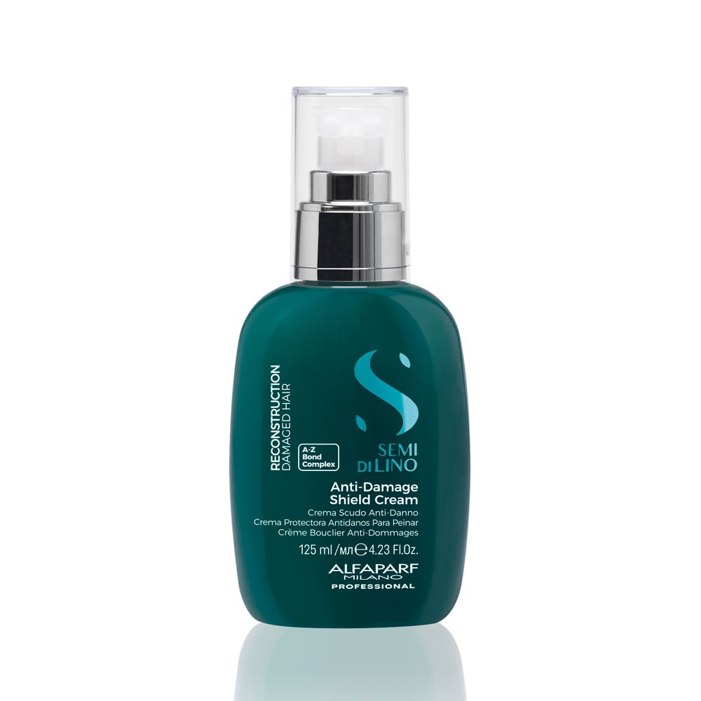 Semi Di Lino Reconstruction - Cheveux abîmés. La Crème Reconstruction thermo-protectrice agit comme un bouclier Anti-Dommages. Elle finalise le processus de Reconstruction des cheveux abîmés moyens à épais, améliorant la résistance et l'élasticité de la fibre capillaire et crée un bouclier protecteur efficace autour des cheveux, les protégeant de la chaleur et des risques de casses et pointes fourchues. Les cheveux sont réparés, plus forts, brillants et d’apparence saine.