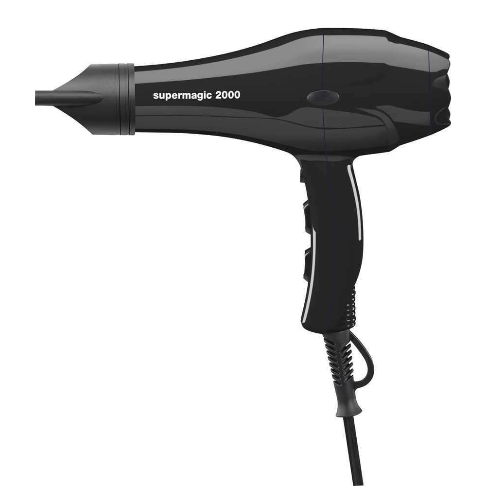 Sèche-cheveux avec température réglable, jet froid, 2 buses incluses et un cordon de 2,8 m orientable à 360°. Un sèche-cheveux AC semi-compact, 2000W.