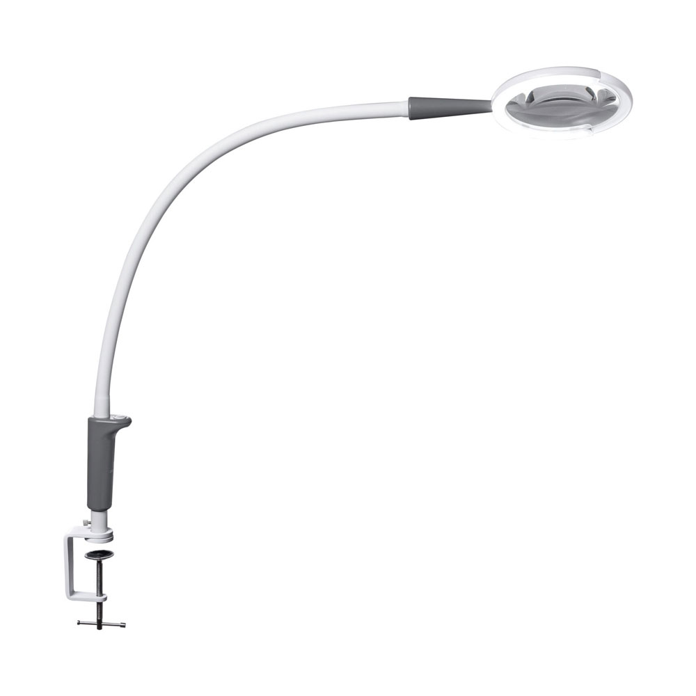 La Magnificent Pro™ On Clamp est une loupe et lampe de travail compacte 2-en-1. Elle est dotée d’un bras flexible pour un positionnement optimal et d’un cache-lentille magnétique permettant de passer facilement de la loupe à l’éclairage de travail. Ses LED Daylight 6 000K offrent une luminosité claire et puissante, tandis que son IRC supérieur à 95 garantit une restitution fidèle et précise des couleurs. Trois niveaux de luminosité réglables et une grande lentille de grossissement semi-cerclée (13cm / 5 po, 1,75x) assurent un grossissement optimal.