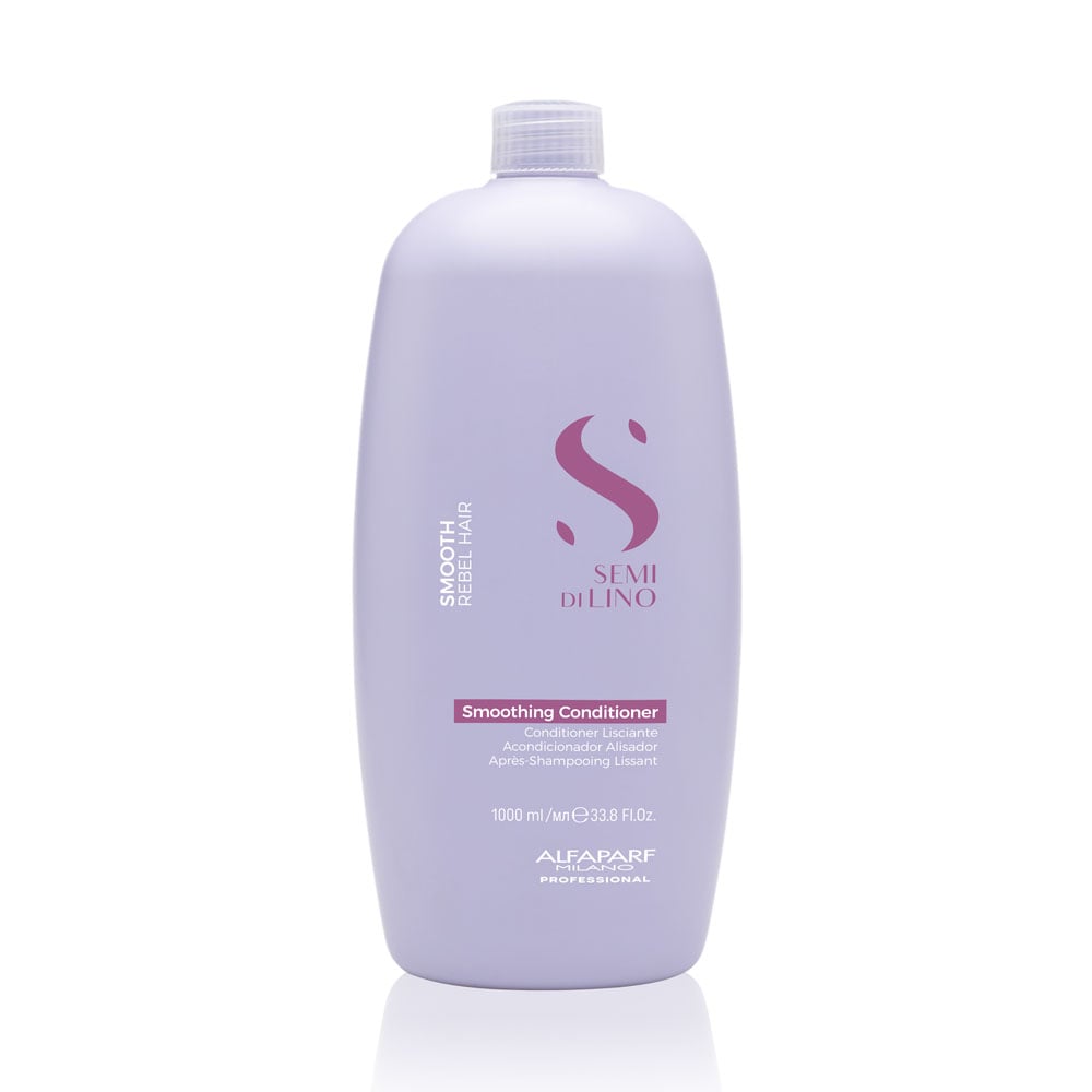 Semi Di Lino Smooth – Onhandelbaar haar. Dankzij de ontwarrende werking helpt de Smooth Smoothing Conditioner pluis te controleren en maakt het haar zacht, licht en goed handelbaar.