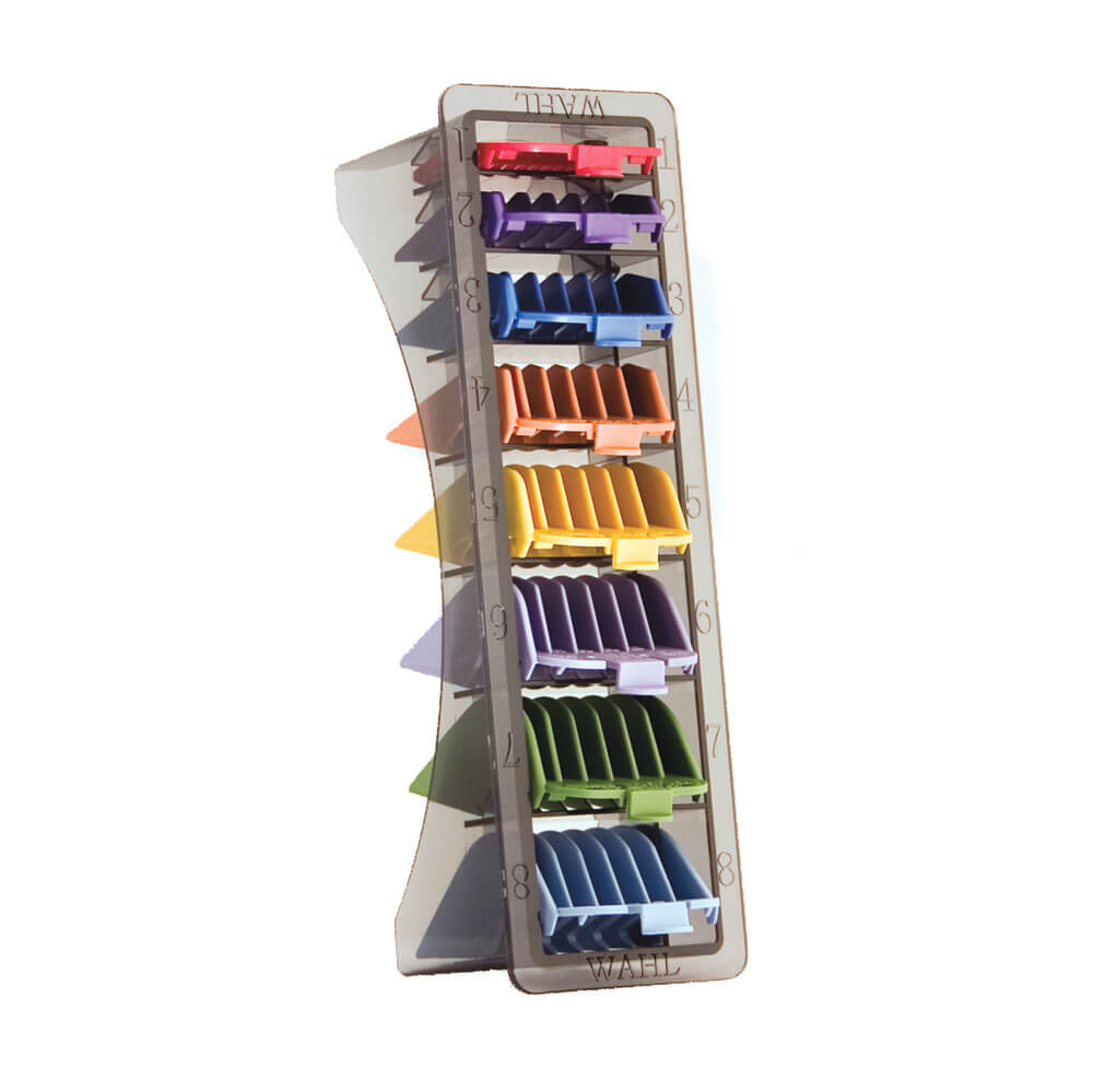 Hier is een complete set tondeusegeleiders van Wahl, aanpasbaar aan alle elektrische tondeuses van het merk op ware grootte. Deze tondeusegeleiders maken het mogelijk om de te knippen lengte te bepalen met kammen van 3 mm tot 25 mm. Met deze kwaliteitsaccessoires kan nauwkeurig worden gewerkt zonder risico op huidbeschadiging. Het ontwerp van deze robuuste kunststof producten is ideaal voor een goede duurzaamheid.