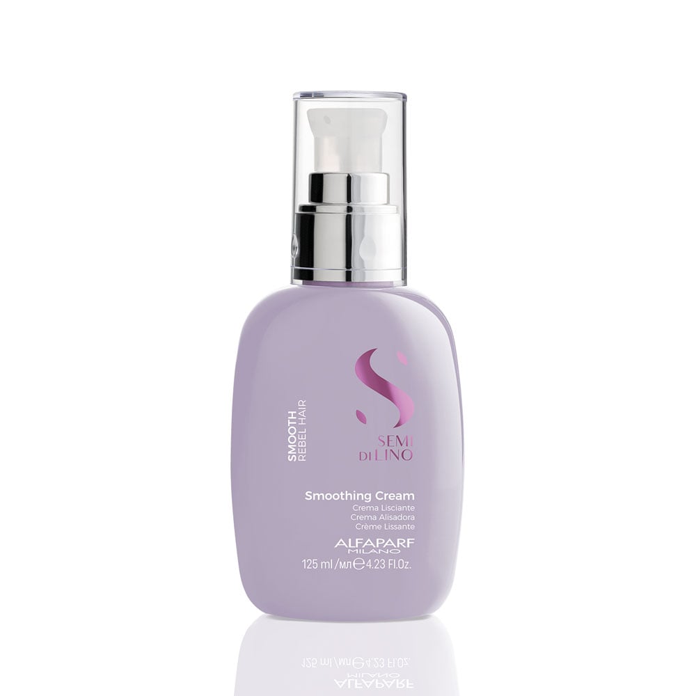 Semi Di Lino Smooth – Onhandelbaar haar. De Smoothing Cream maakt het borstelen gemakkelijker door het haar te beschermen tegen hitte tot 230 °C en vochtigheid, voor langdurig glad en pluisvrij haar.